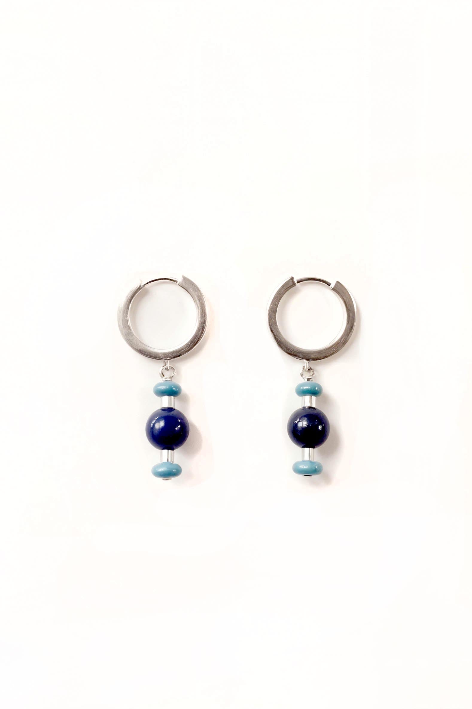 Sterling silver, lapis lazuli and adventuring Huggies. Perfect for an elevated every day look. Suitable for first or second lobe piercing.