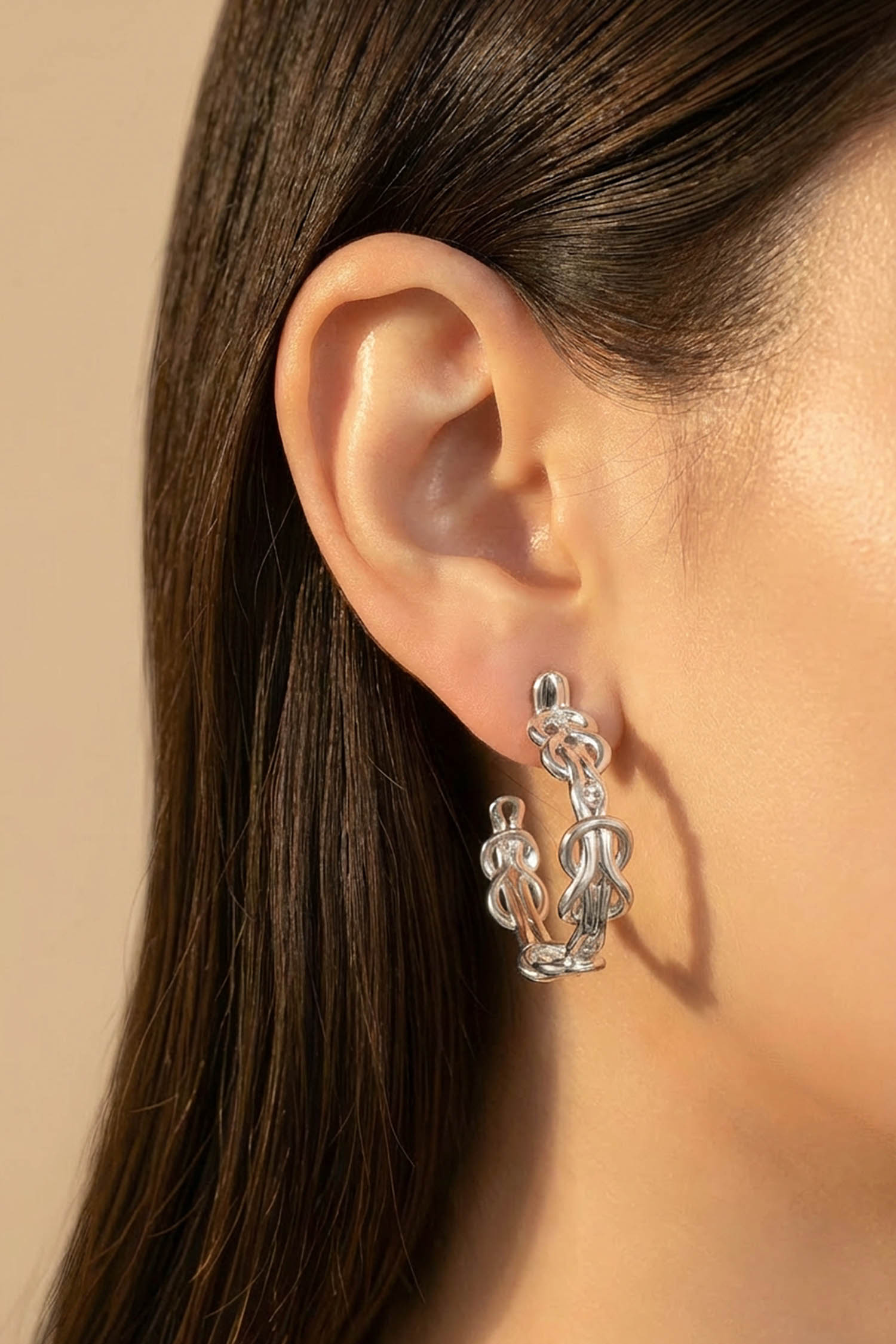 Bold yet refined, the Hera Hoops bring sculptural artistry to your everyday. Thoughtfully designed with a unique post placement, they sit securely on your earlobe for all-day comfort—no slipping, no sagging.