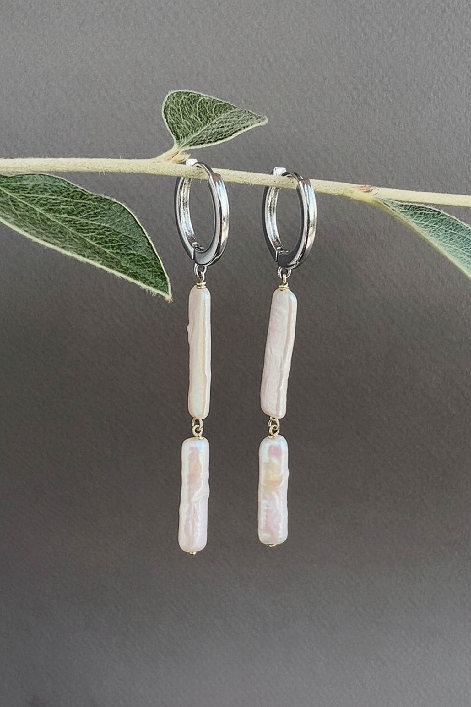 • Rhodium Plated recycled jeweler's brass with freshwater pearls