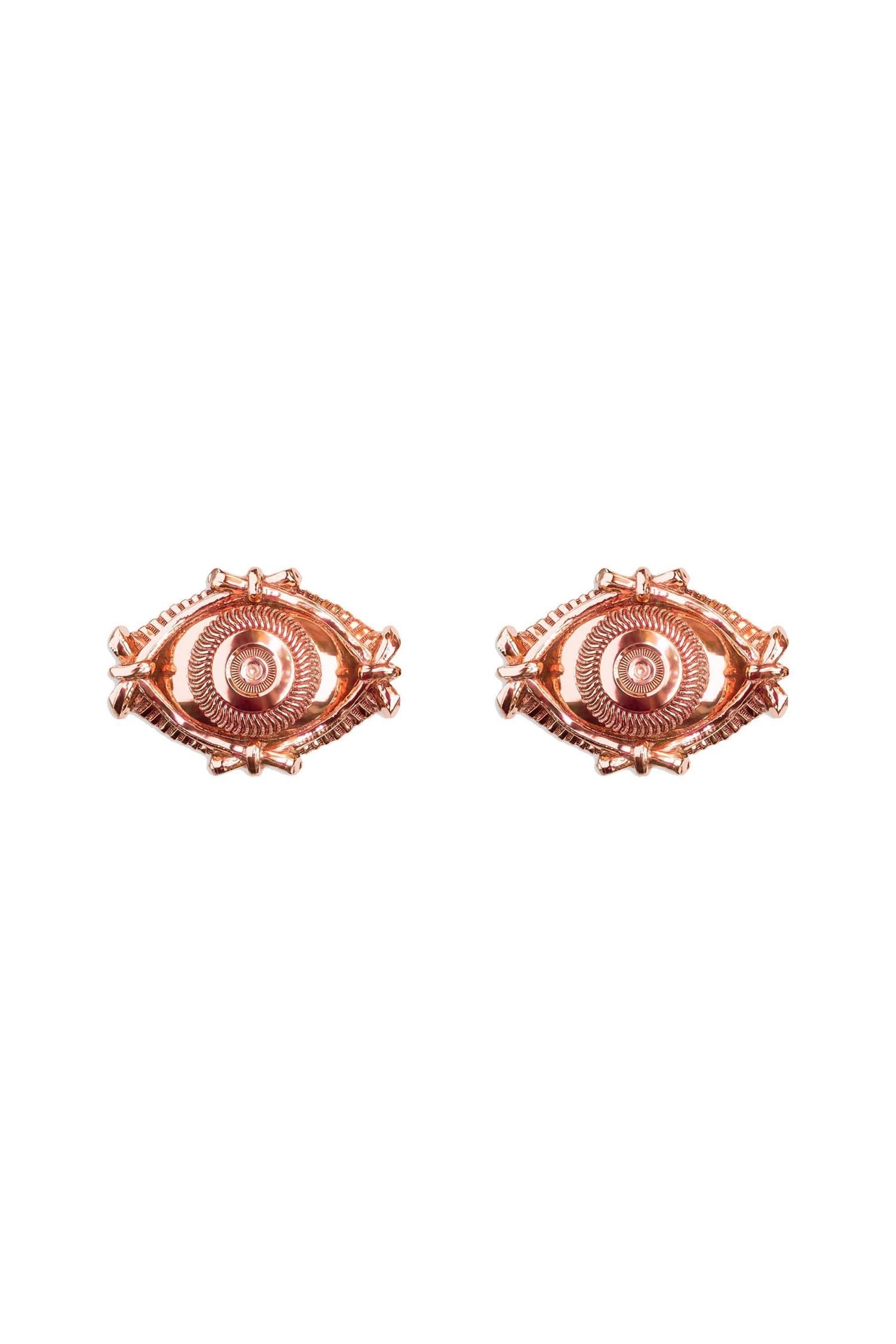 Our Eye rose gold stud earrings are destined to be your new favorite way to complete your look. Wear these as a simple accent to your favorite t-shirt and jeans, or use them in a second piercing paired up with a hoop for an edgier look.