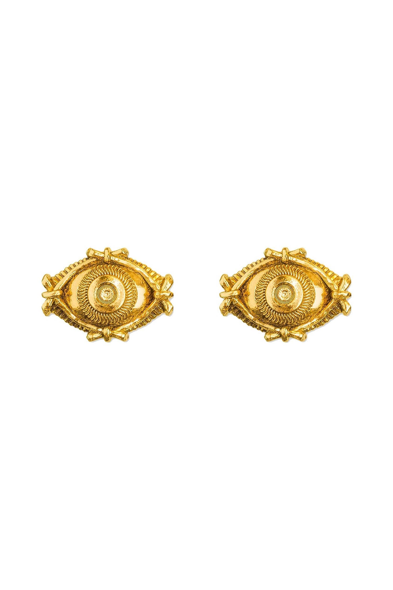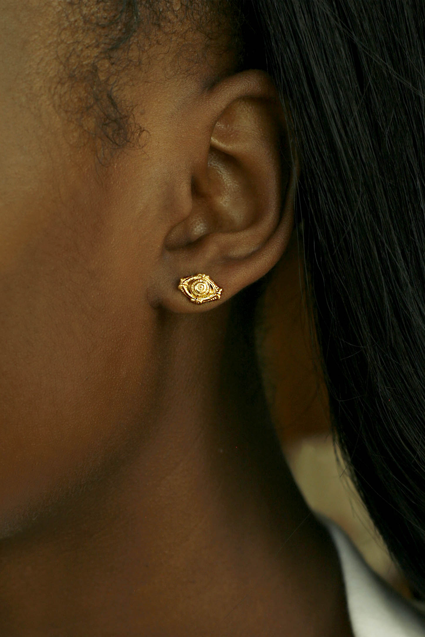 Embrace the protective power of our evil eye stud earrings. Representing resilience against negative energy and bad luck, these studs cultivate an invincible aura, swiftly guiding you away from unwanted influences on your journey. Also available in silver.
